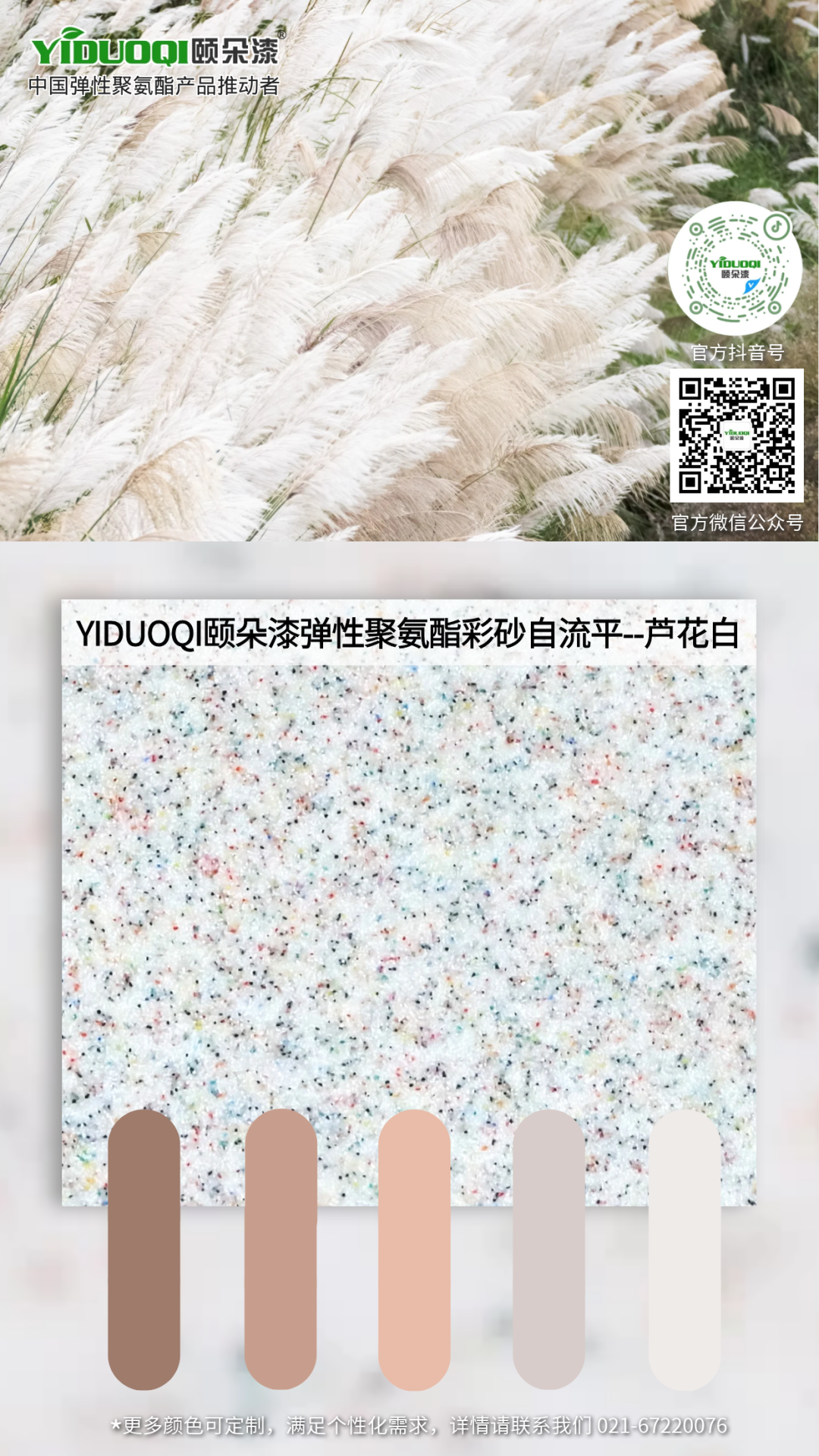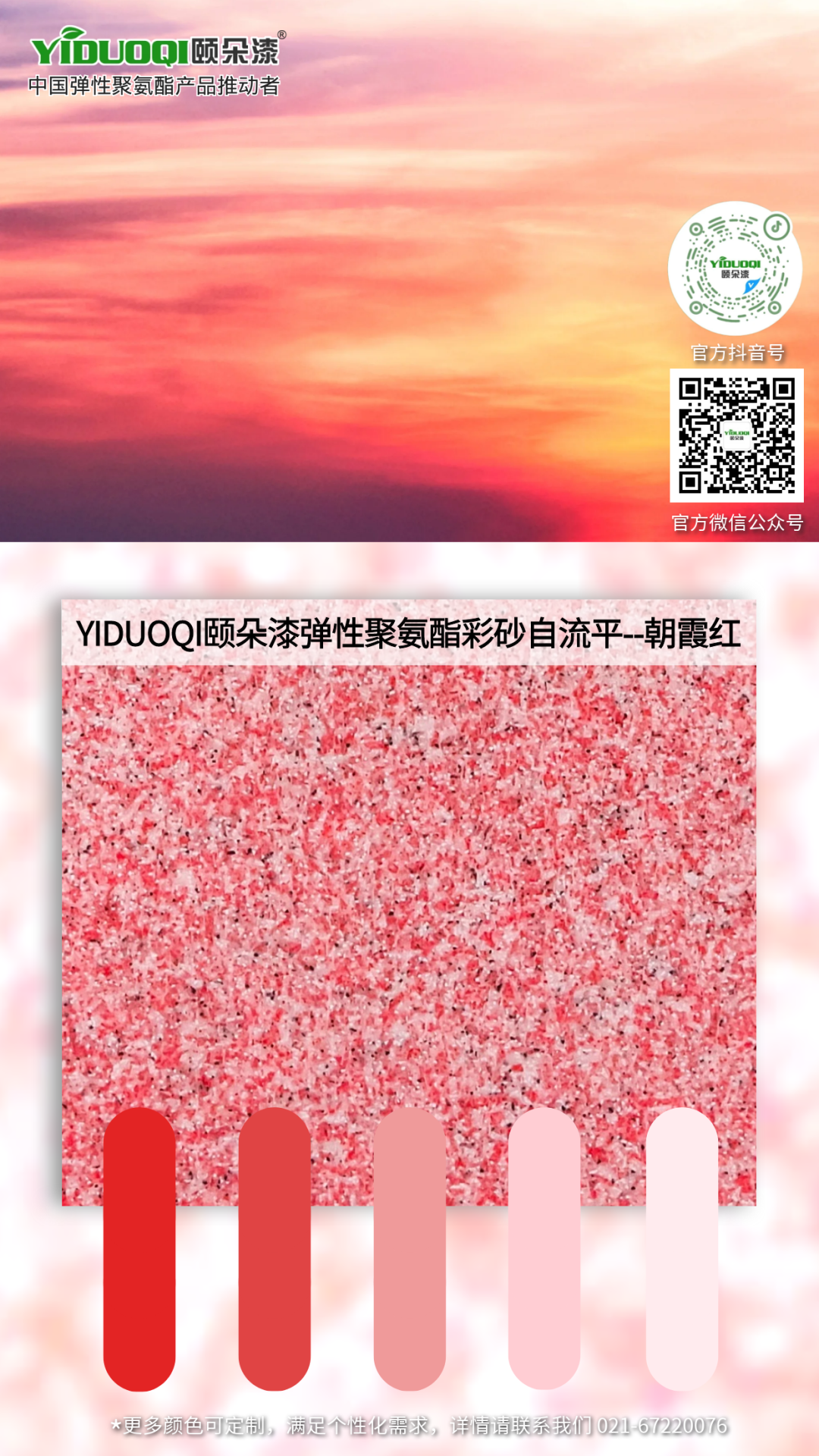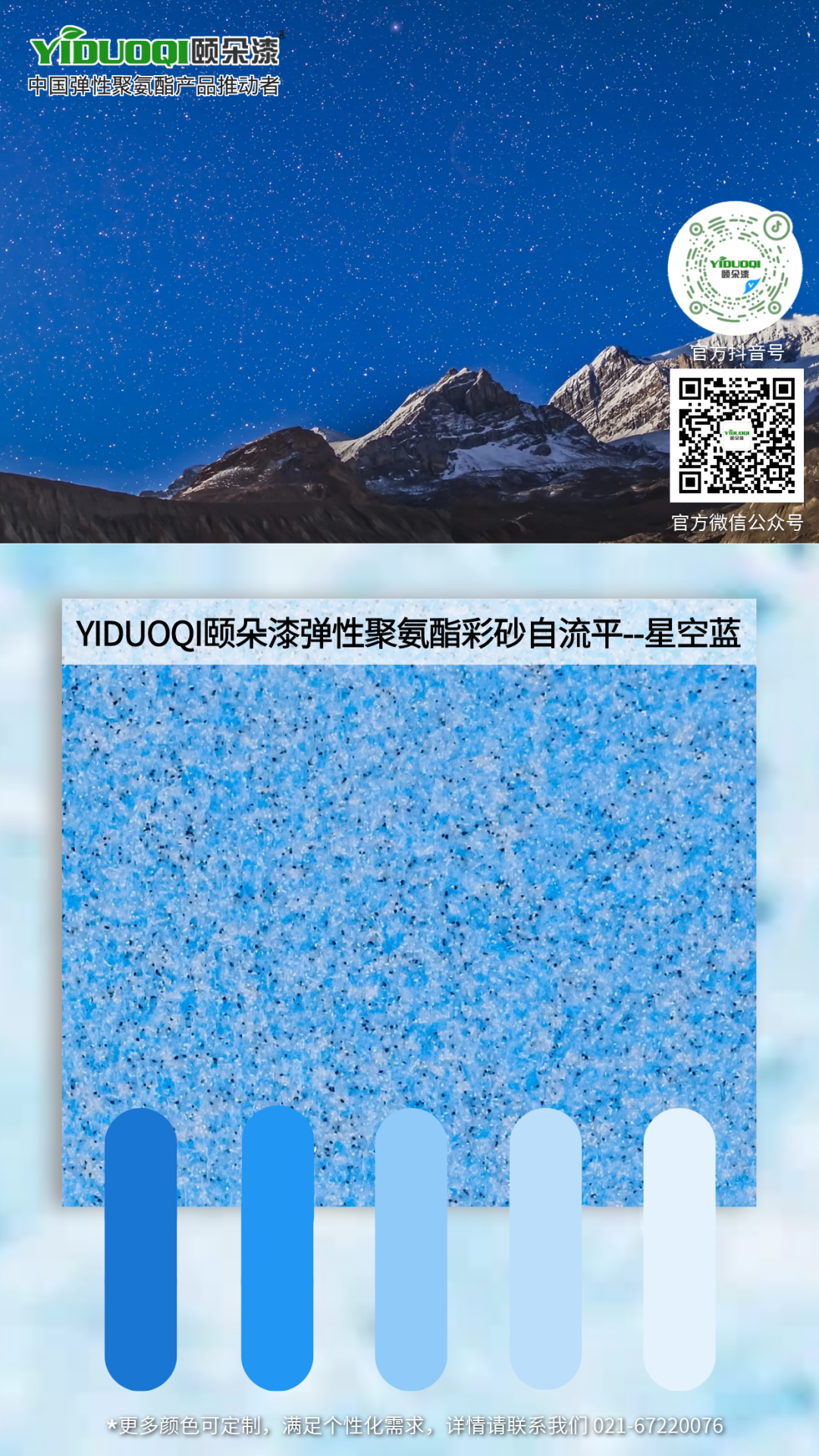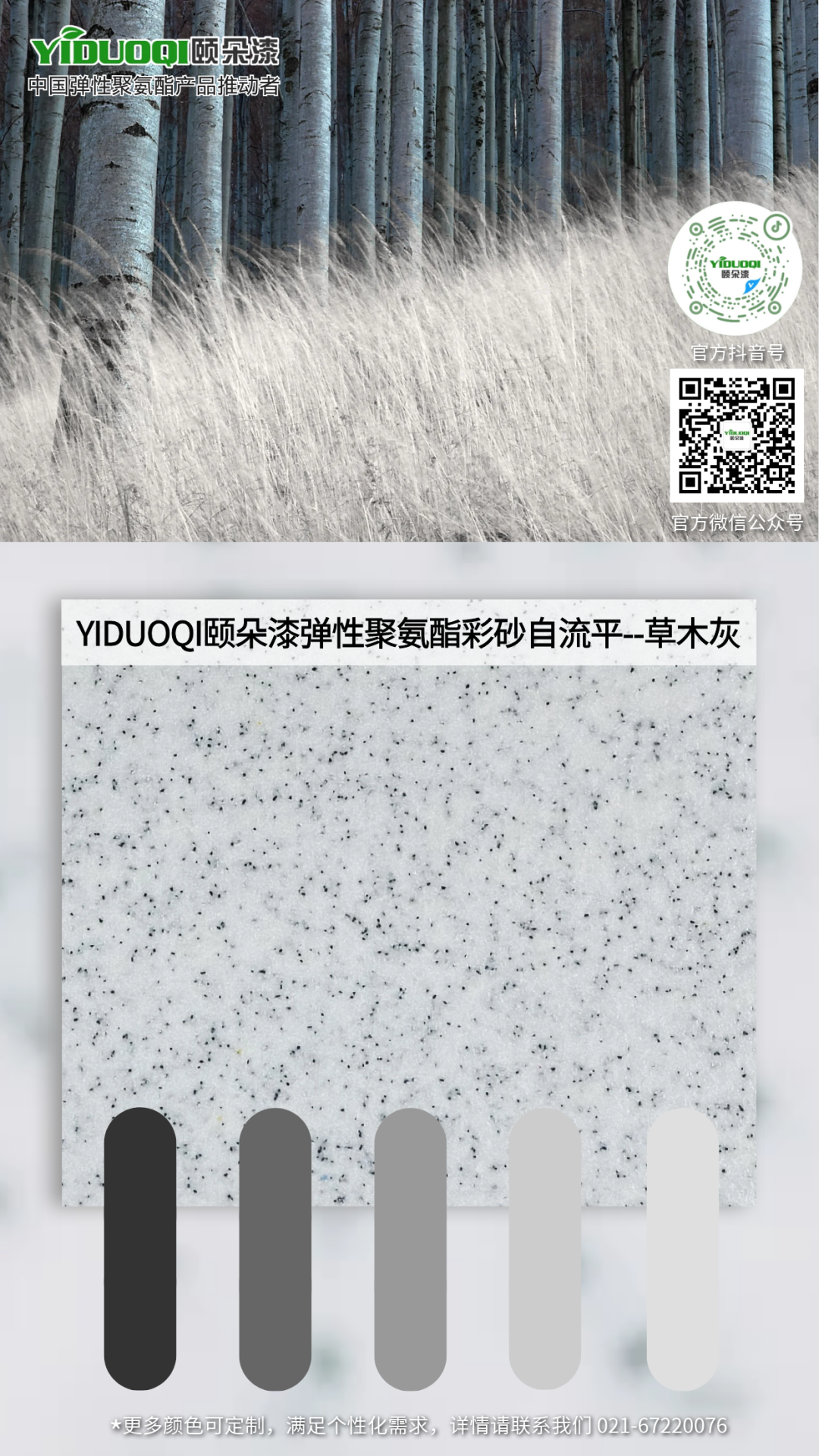 彩砂地坪是一款兼具高装饰性与高性能的地面材料,美观舒适与实用功能并重。弹性聚氨酯彩砂自流平现推出六款新色,为地面赋予绚丽色彩。