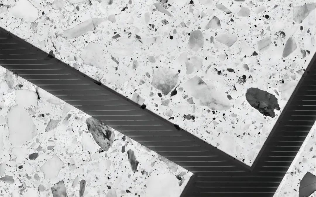 无机骨料弹性聚氨酯磨石采用高韧性、可调弹性的耐候聚氨酯作为粘结料,在保持设计效果的同时,实现整体无缝不开裂、耐候不黄变、耐老化等优异性能。其独特的弹性符合人体工学,能保护使用者脚关节,提供静音降噪和舒适脚感,开创了不开裂耐候弹性聚氨酯磨石的新时代。
