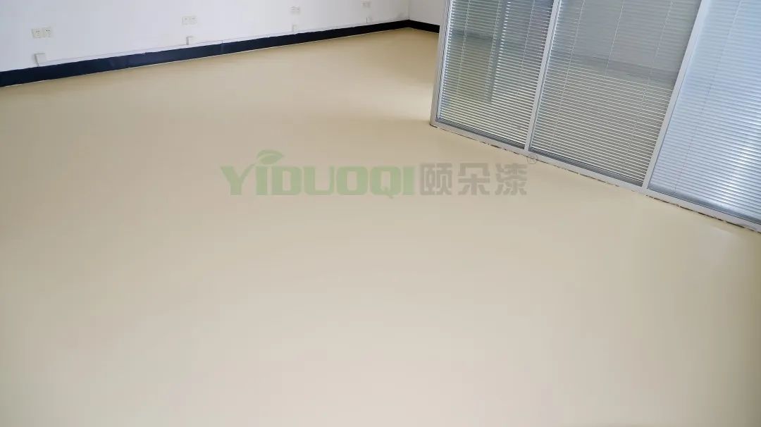YIDUOQI颐朵漆弹性聚氨酯地坪采用自流平施工工艺,实现整体无缝成型,替代传统地板地砖的拼缝工艺。这不仅呈现一体化美观效果,还能有效防止灰尘细菌积聚,提供清洁健康的工作环境。