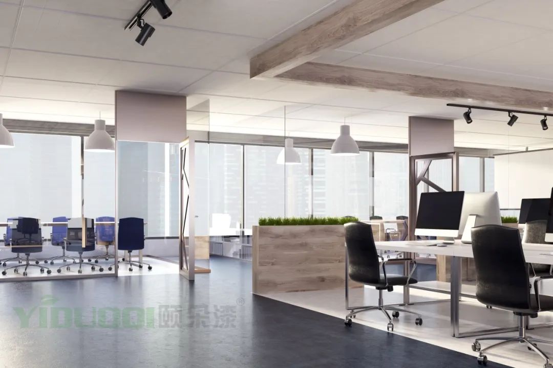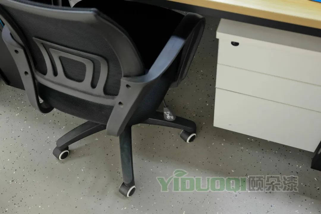 推荐地坪体系包括:弹性聚氨酯艺术岩片、弹性聚氨酯彩砂自流平、弹性聚氨酯磨石。YIDUOQI颐朵漆弹性聚氨酯地坪凭借其多功能特性,成为办公室地面的理想选择。