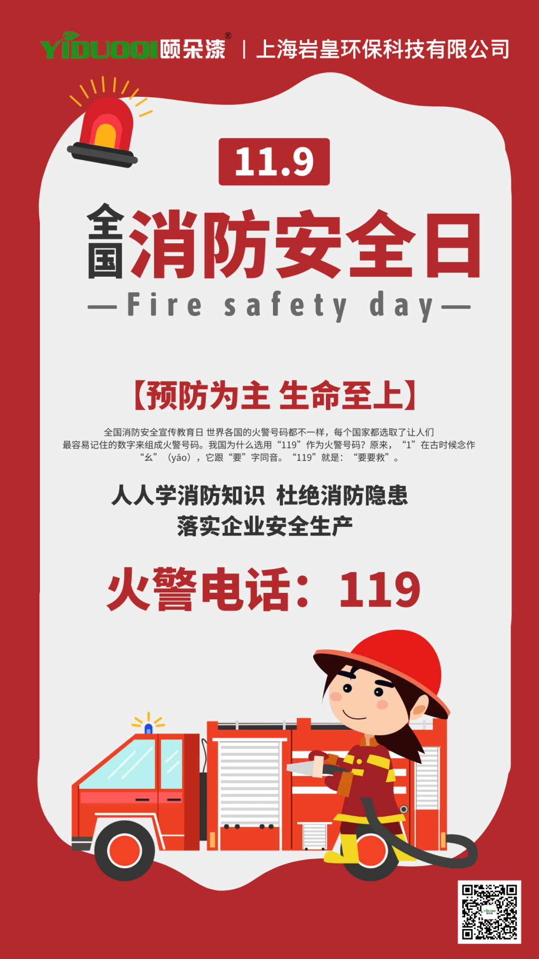 “119”是火灾报警电话号码,与11月9日的数字相同,便于记忆。因此自1992年起,这一天被正式确定为全国消防日。