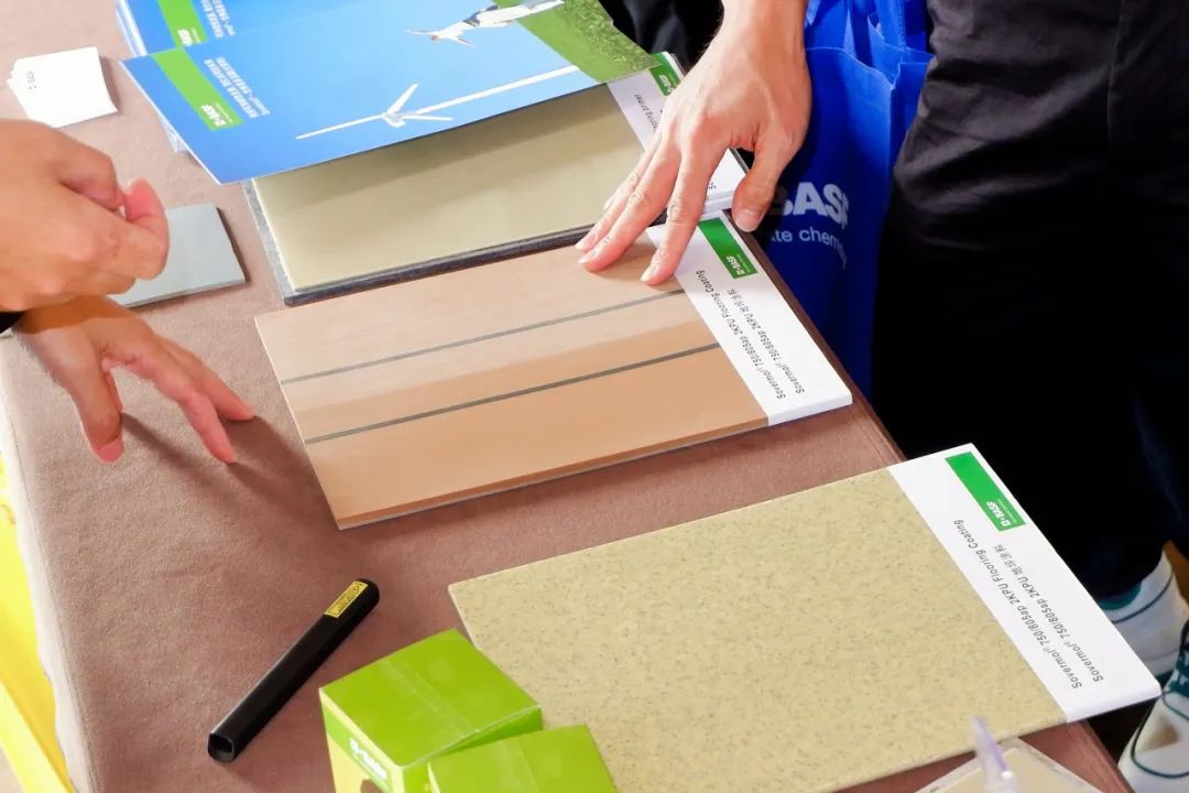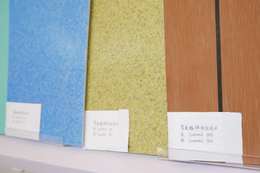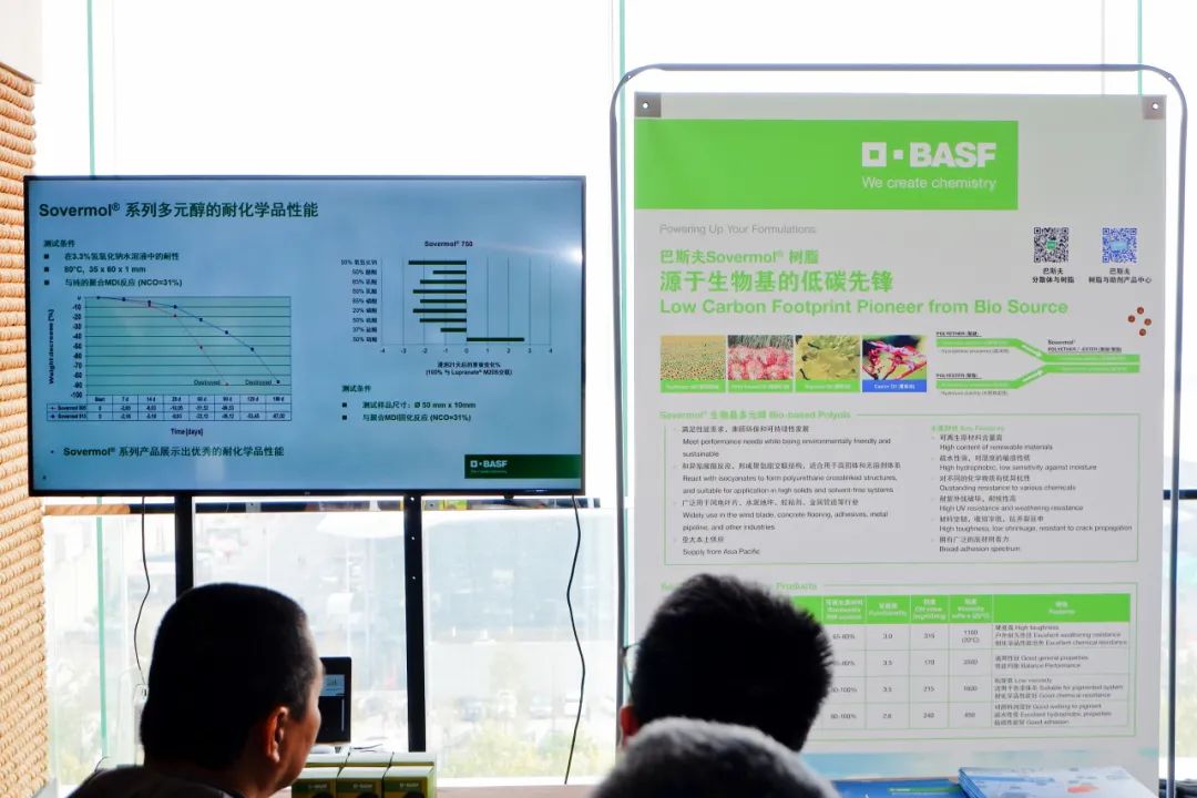 现场展示了我司打造的高性能弹性聚氨酯地坪体系产品。未来,我们将共同推进以高性能生物基多元醇等先进环保材料在中国船舶、不开裂磨石、抗开裂工业地坪等多领域的功能型应用。
