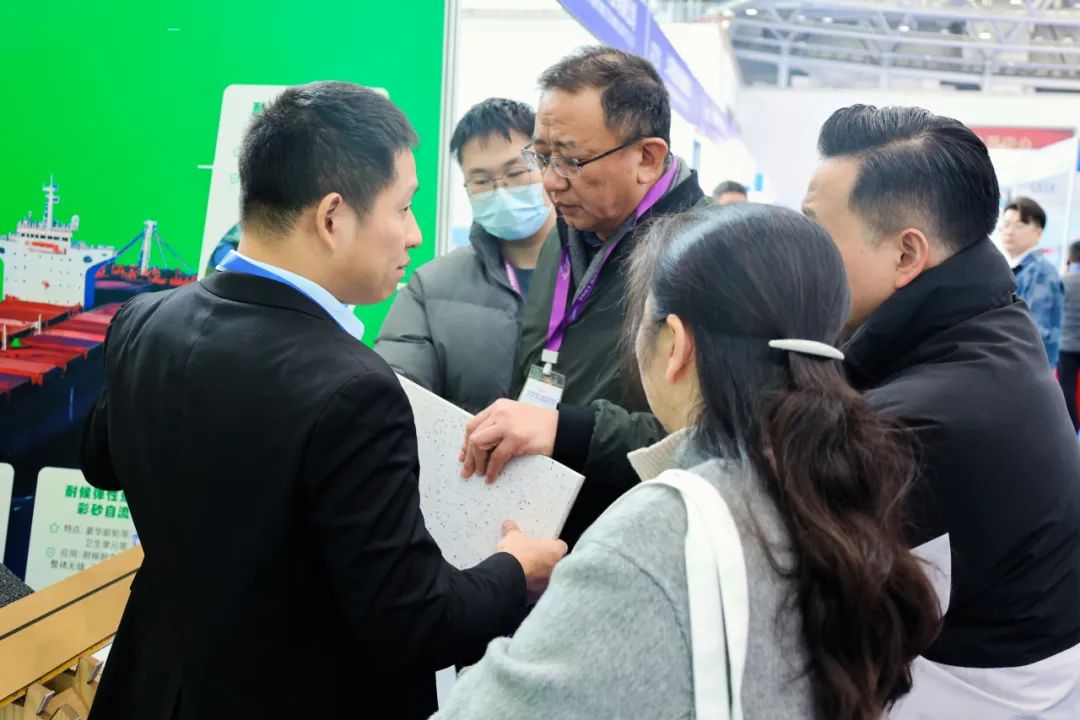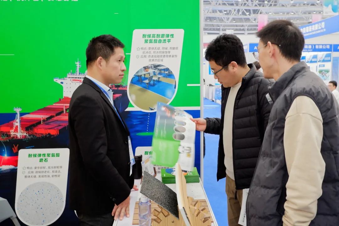 在2023船舶海工产业展上,上海岩皇与200多家国内外企业共同参展,其弹性聚氨酯船舶地面材料吸引了大量业界人士关注,获得国外工程师"beautiful"、"good"等高度评价。