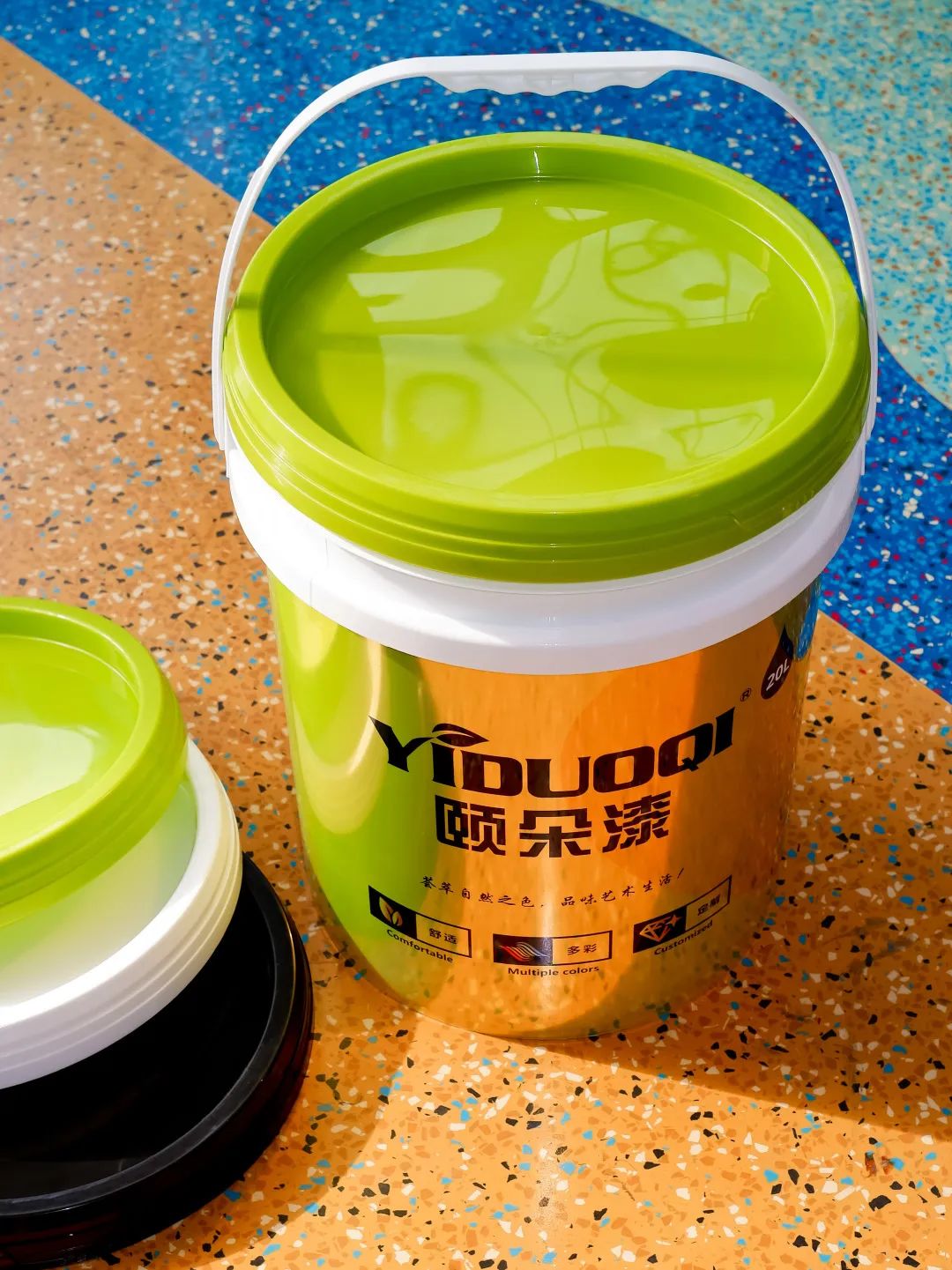 新款彩桶采用食品级可回收塑料材质,由金属桶全面改为塑料包装,体现了对环保的进一步追求。施工后的废弃包装更便于回收处理,避免了金属桶的回收难题。