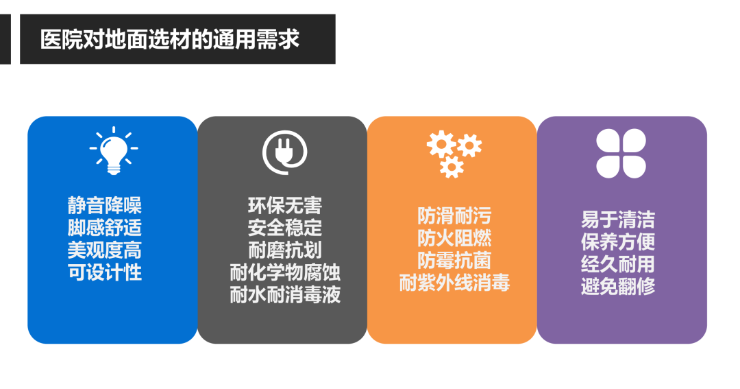 针对医疗项目的不同区域用途,可选择颐朵漆不同弹性聚氨酯体系产品: