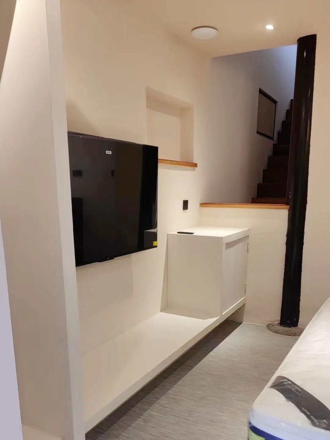 墙面、柜体、踏步采用不流挂弹性聚氨酯涂料批刮,既赋予家居优雅外观,又具备抗裂、保温、防霉、耐污易清洁、防水可擦洗等高性能特性,为空间提供全方位保护。