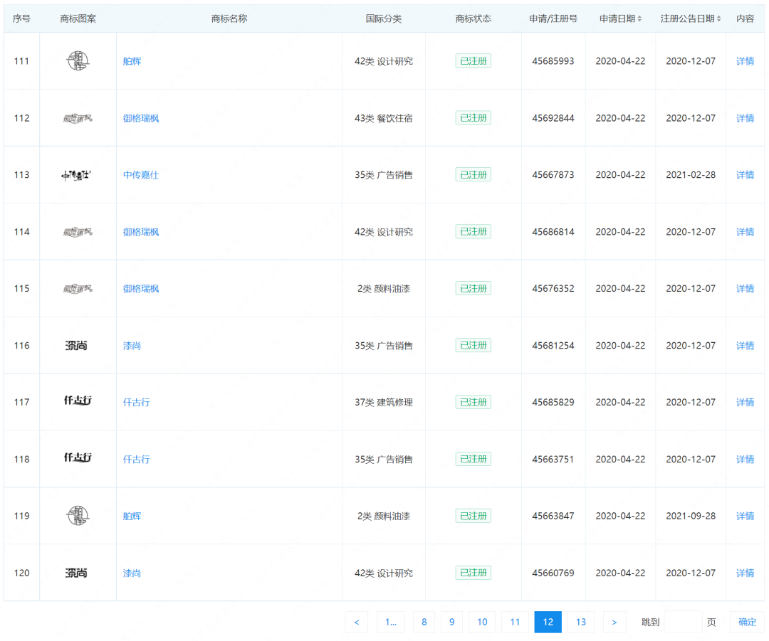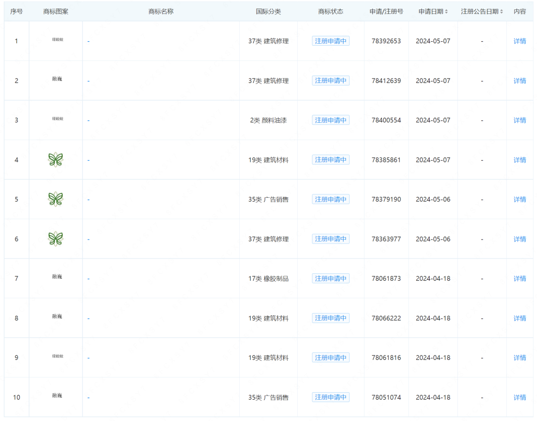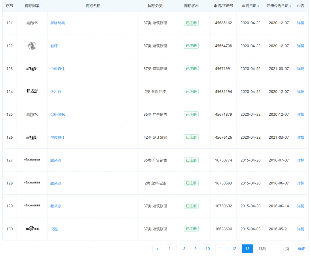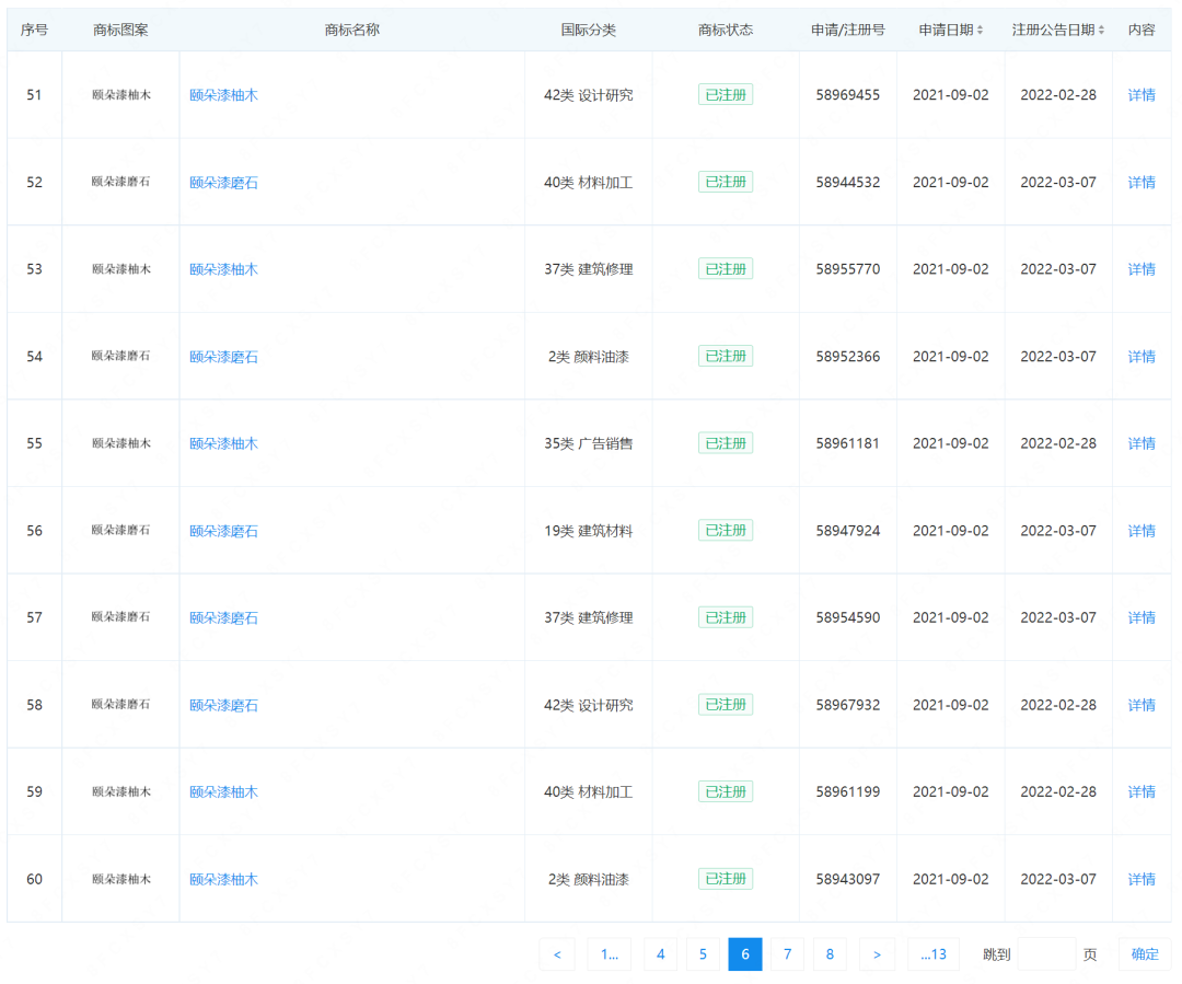 目前,公司主要商标“YIDUOQI颐朵漆”凭借丰富的弹性聚氨酯产品体系,已成为推动中国弹性聚氨酯应用的重要力量。此外还拥有“舶辉”“金舶辉”“漆尚”“御格瑞枫”“中传嘉仕”“琨逸”“仟古行”“颐朵”“朵颐”“岩皇颐朵”“岩皇华诚湾”“星泓石”“颐小七”等130项已注册商标,共同推动产品在各领域发展。
