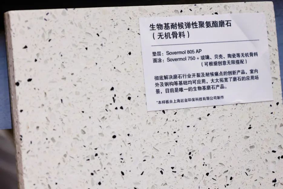 以YIDUOQI颐朵漆弹性聚氨酯磨石为例,该产品采用环保可持续的生物基聚氨酯原料,具有不开裂、整体无缝、静音降噪、脚感舒适、美观持久等优势。施工可选自流平摊铺,体系可选耐候型,满足客户多样化需求。