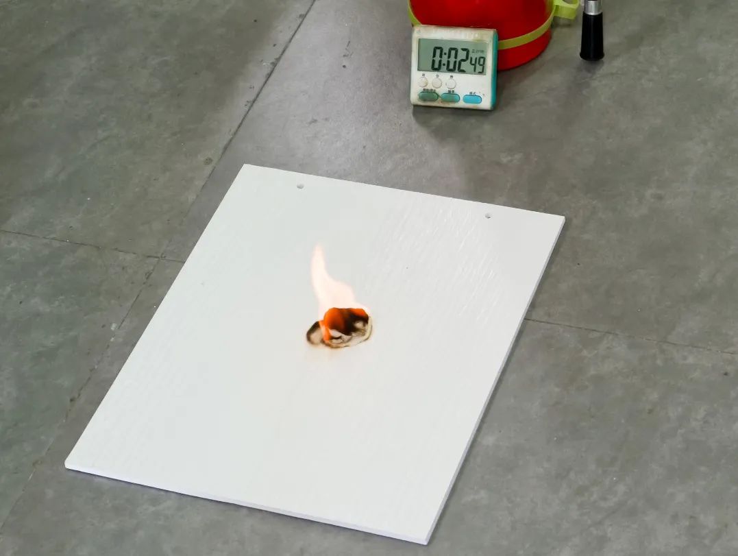 防火性能测试中,墙面和样板均表现出优异性能:使用酒精点火时墙面不燃且过火无痕;样板在集中燃烧下依然不燃。高温测试后面层仍保持良好韧性和耐磨性。