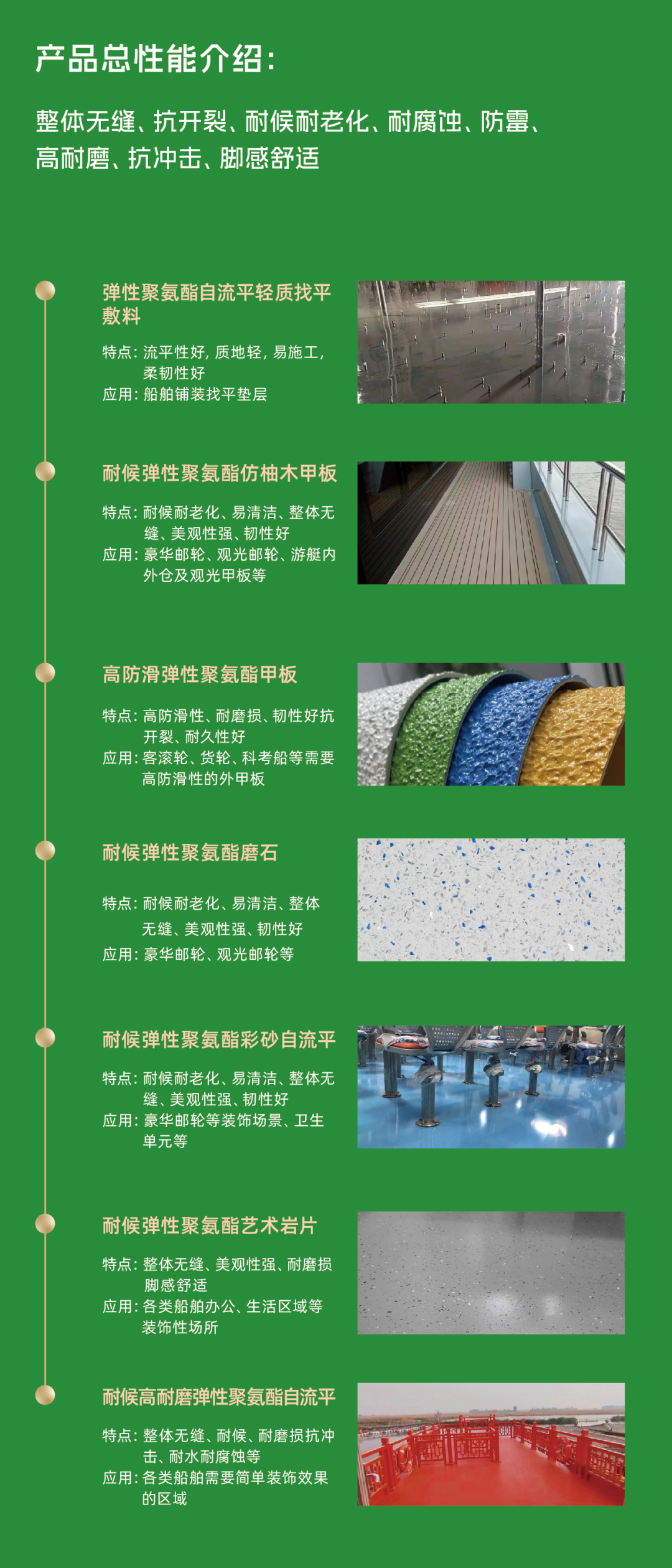 高防滑弹性聚氨酯甲板专为客滚轮、运输船等需要高防滑性能的甲板及直升机升降甲板设计,具有卓越的防滑性能和耐用性,确保车辆稳固停泊和人员安全通行。