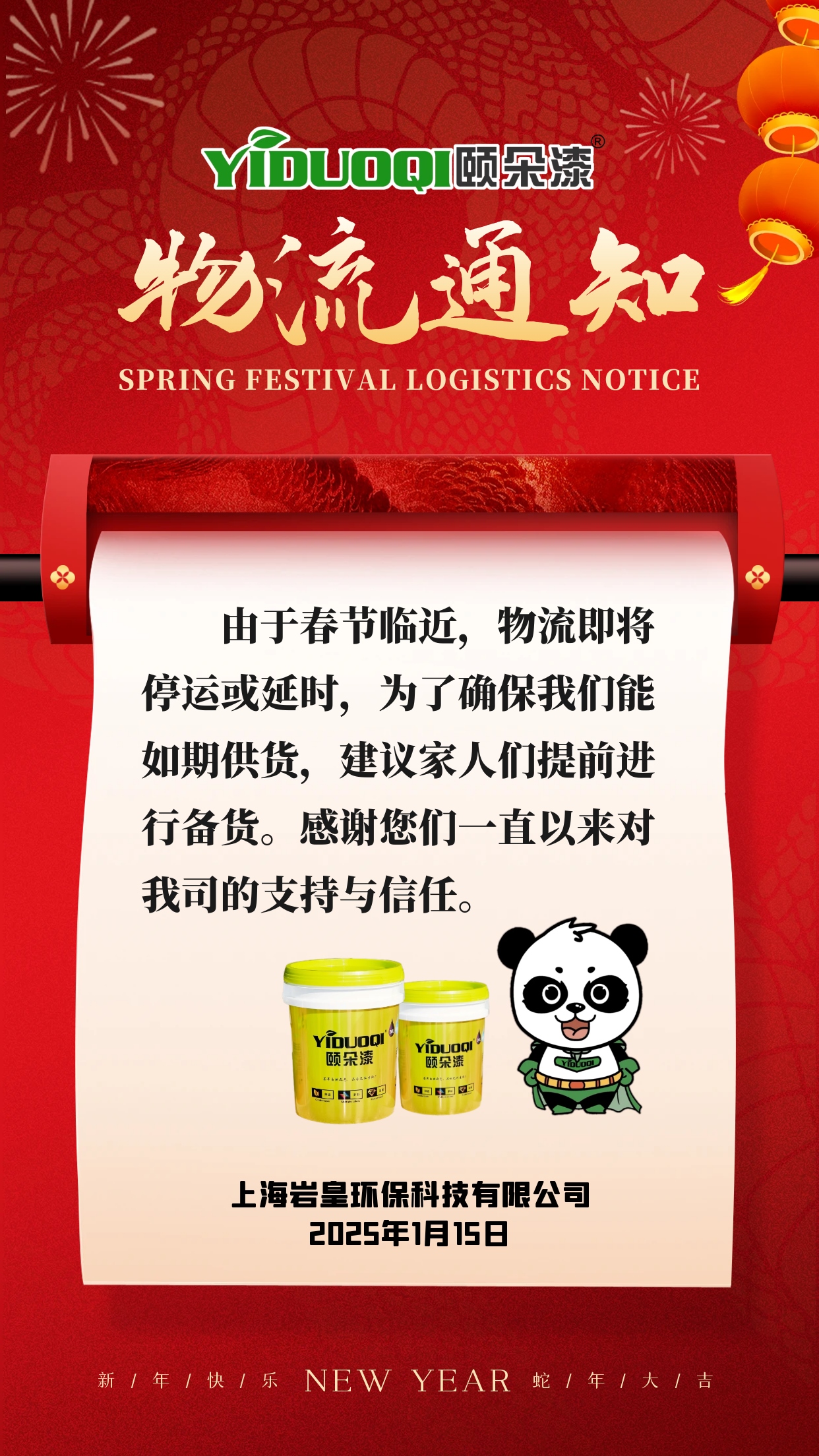 春节即将到来,YIDUOQI颐朵漆在此提醒家人们注意节前物流时效。